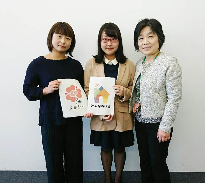 起業を予定している「株式会社メルシー」及びデイサービス「みんなの家」のロゴを、デザイン学部2年生の小熊凛さんが作成しました。この会社の起業については、本学看護学部の卒業生が参加しており、作成したロゴを活用して、富山型デイサービス・地域共生ホームの事業を始める予定です。