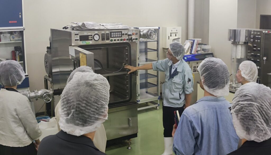 施設見学では、食品加工機器や、道総研の技術を活用した製品を紹介いただき、活発な質疑応答が交わされました。今後の共同研究や新たな連携の可能性についても意見交換が行われ、非常に有意義な視察見学会となりました。