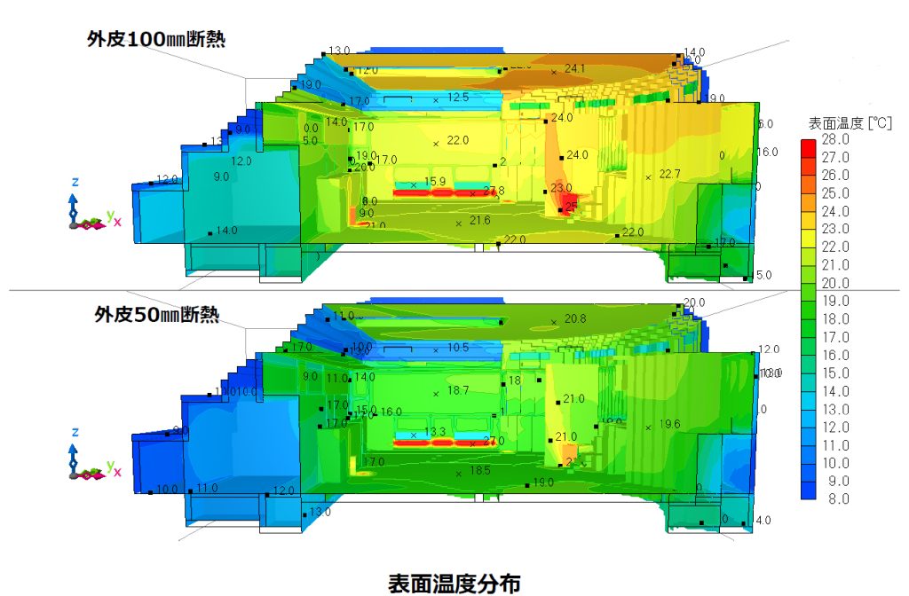 ボルネオ オランウータンの生息地:インドネシア・ボルネオ島(ジャングル内部)の気候を寒冷地・札幌の屋内施設で再現する(室内気候デザイン)ために、外断熱工法、放射式温水暖房、置換換気システム、自然光照明などの技術が採用されています。ベースとなる光・熱環境下で表面温度のほどよい分布が形成された新施設では、活き活きとしたオランウータンの動き、植物の成長が見られ、多くの来園者に親しまれる空間になっています。
