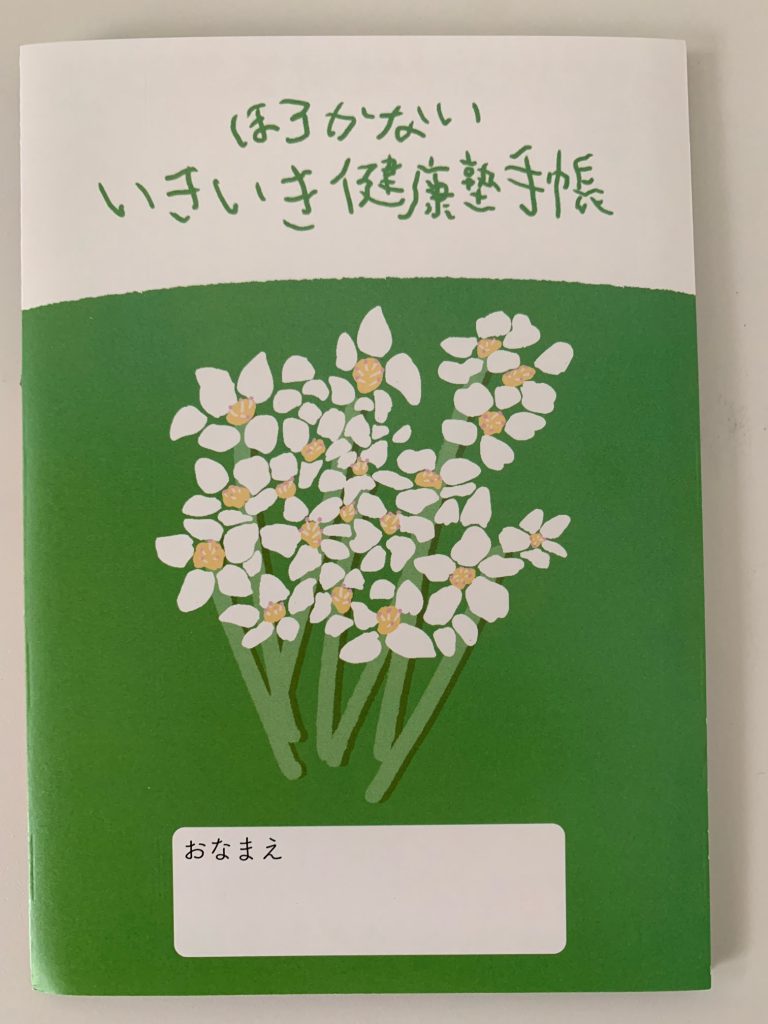 参加者には、町の四季をあしらったオリジナルデザインのいきいき健康手帳をお渡ししています。健康づくりへの意識づけとして、「体組成データラベル化システム『HORKA』(ほるか)」を用いて、測定結果をわかりやすく比較できるよう、ラベル化して手帳に貼っています。来年の参加を励みに、健康づくりに取り組んでくださっています。