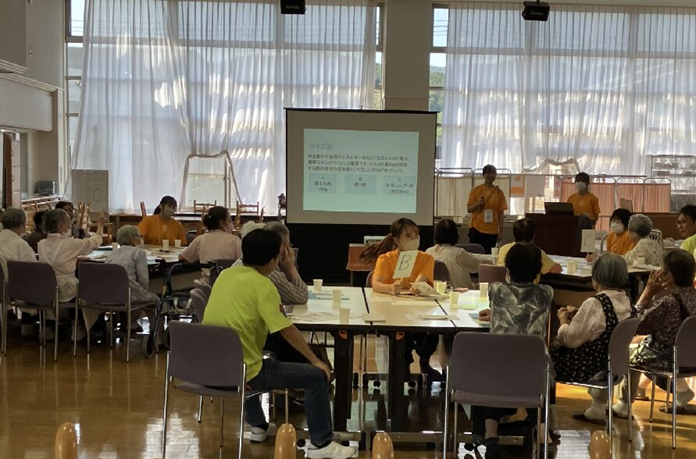 健康からだづくりクイズを行いました。チーム対抗で楽しく知識も得て、とても盛り上がりました。