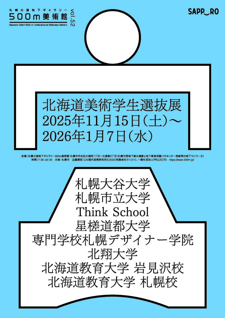 会場: 札幌大通地下ギャラリー500m美術館(札幌地下鉄大通駅~バスセンター前駅間 地下コンコース内)