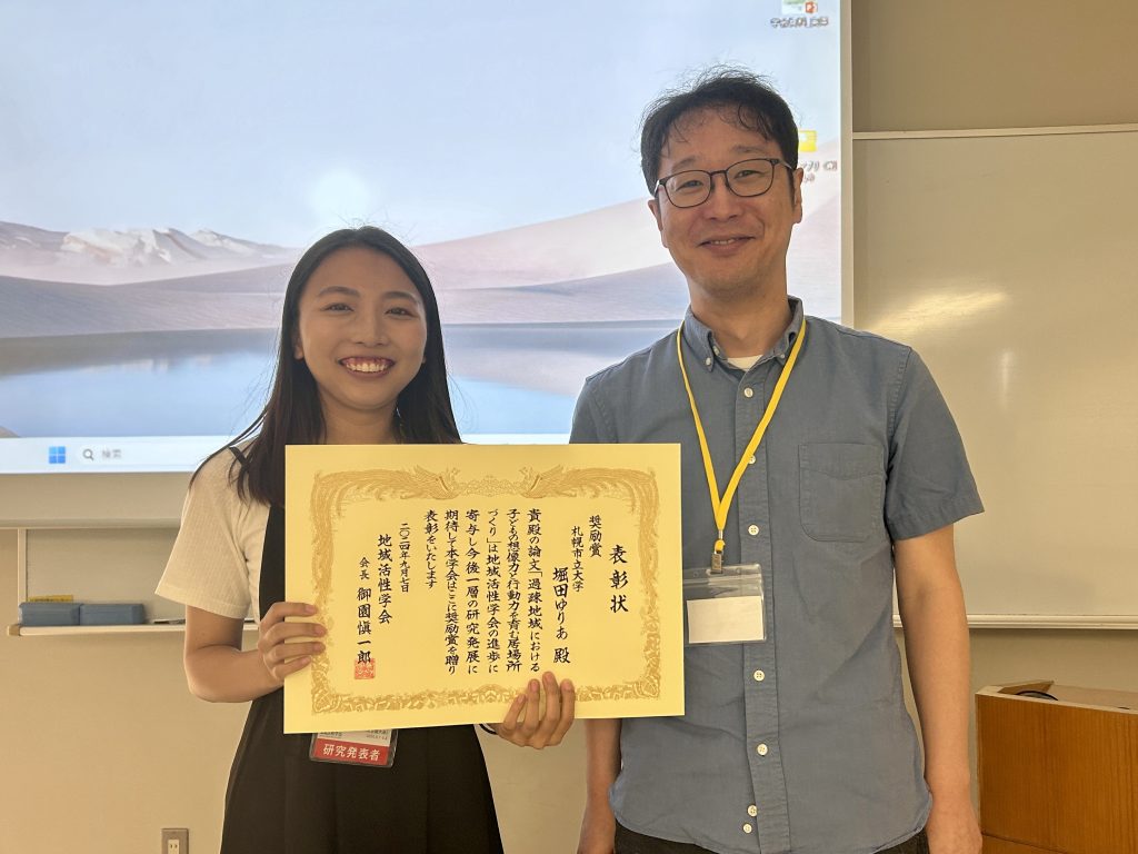 デザイン学部4年 堀田ゆりあさん(小林研究室)が地域活性学会 第16回研究大会(2024年9月7日~8日 名古屋市立大学 滝子キャンパス)にて奨励賞を受賞しました。
