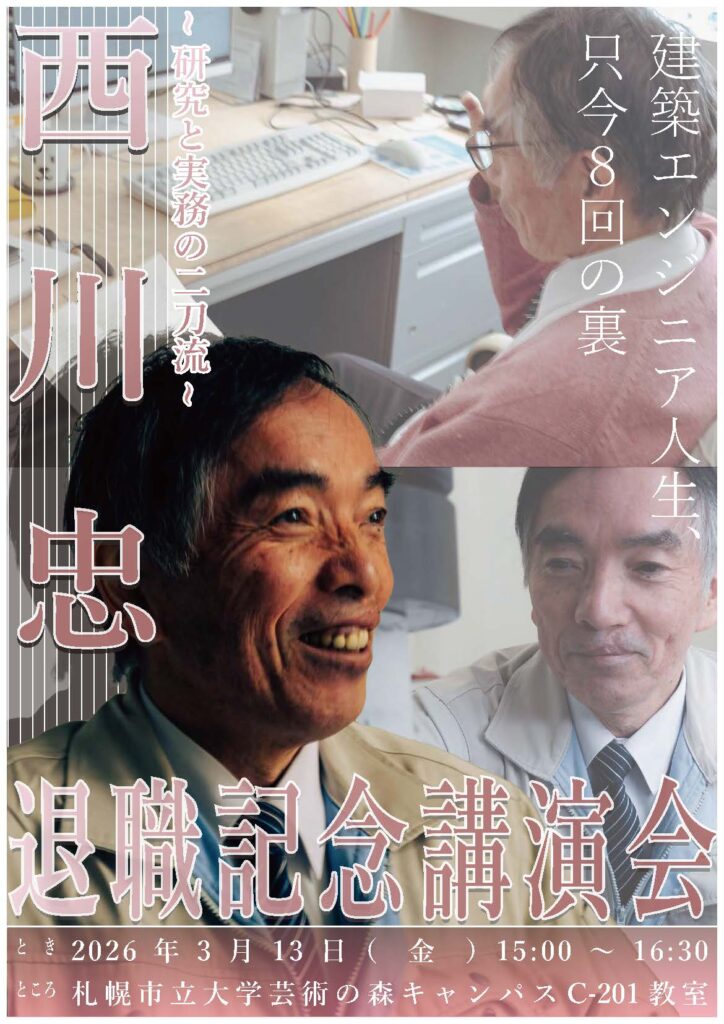 2026年3月31日で本学を退職される、デザイン学部 西川忠教授の退職記念講演会・祝賀会を実施します。皆様のご来場をお待ちしております。